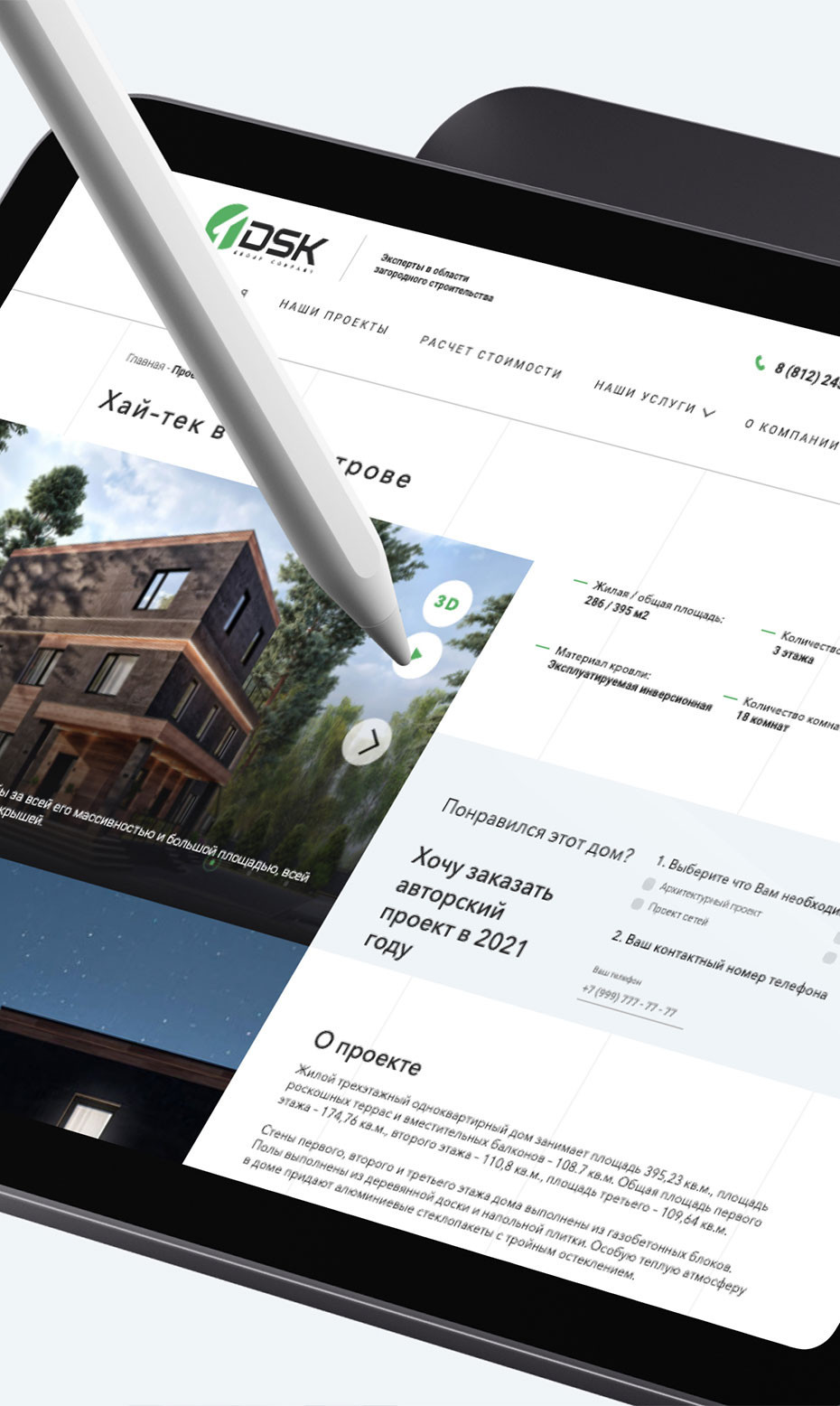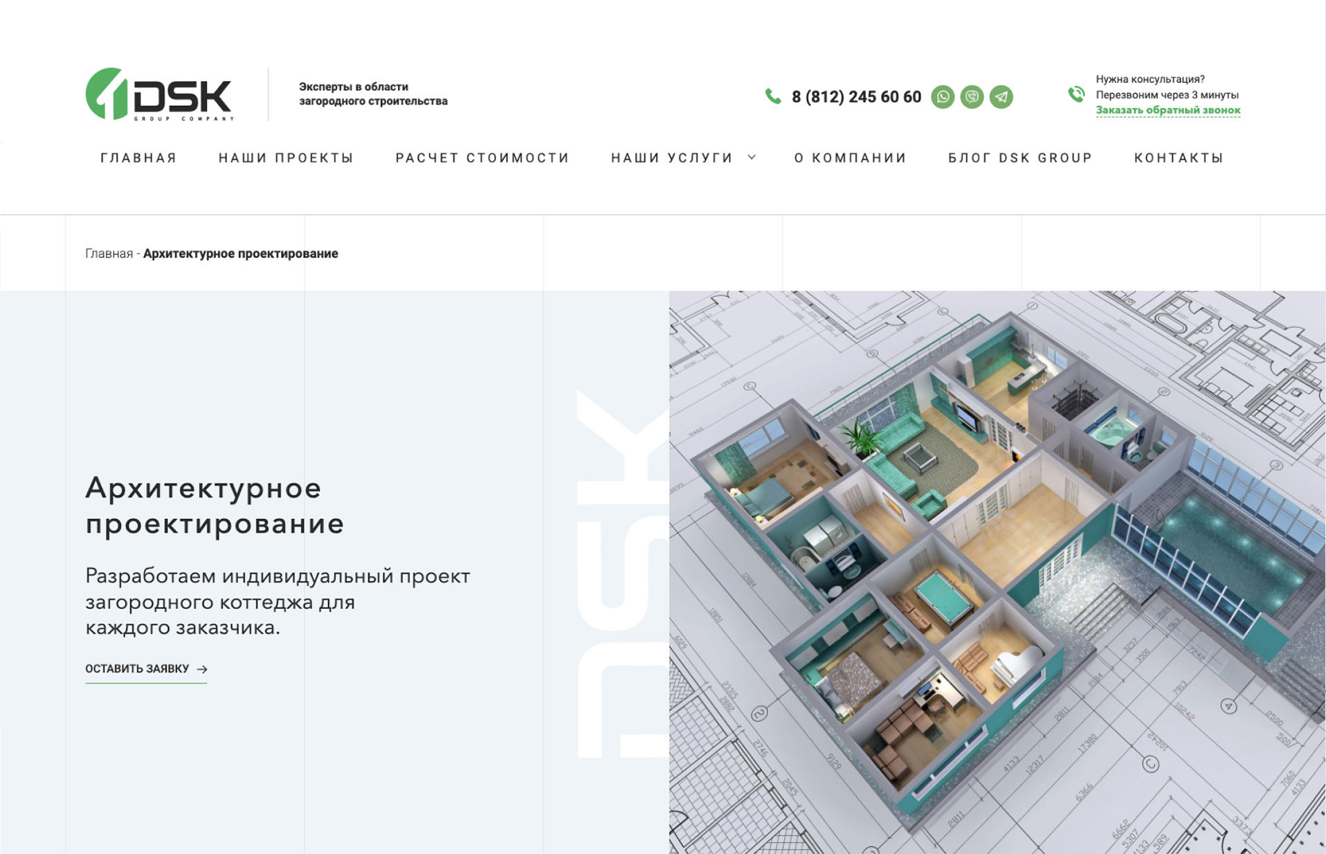 The team of developers was given the task to develop a modern website of the construction company, which introduced the visitor to the capabilities of the company, emphasized the most modern architectural author design of houses and cottages, and provided the visitor with user-friendly functionality.