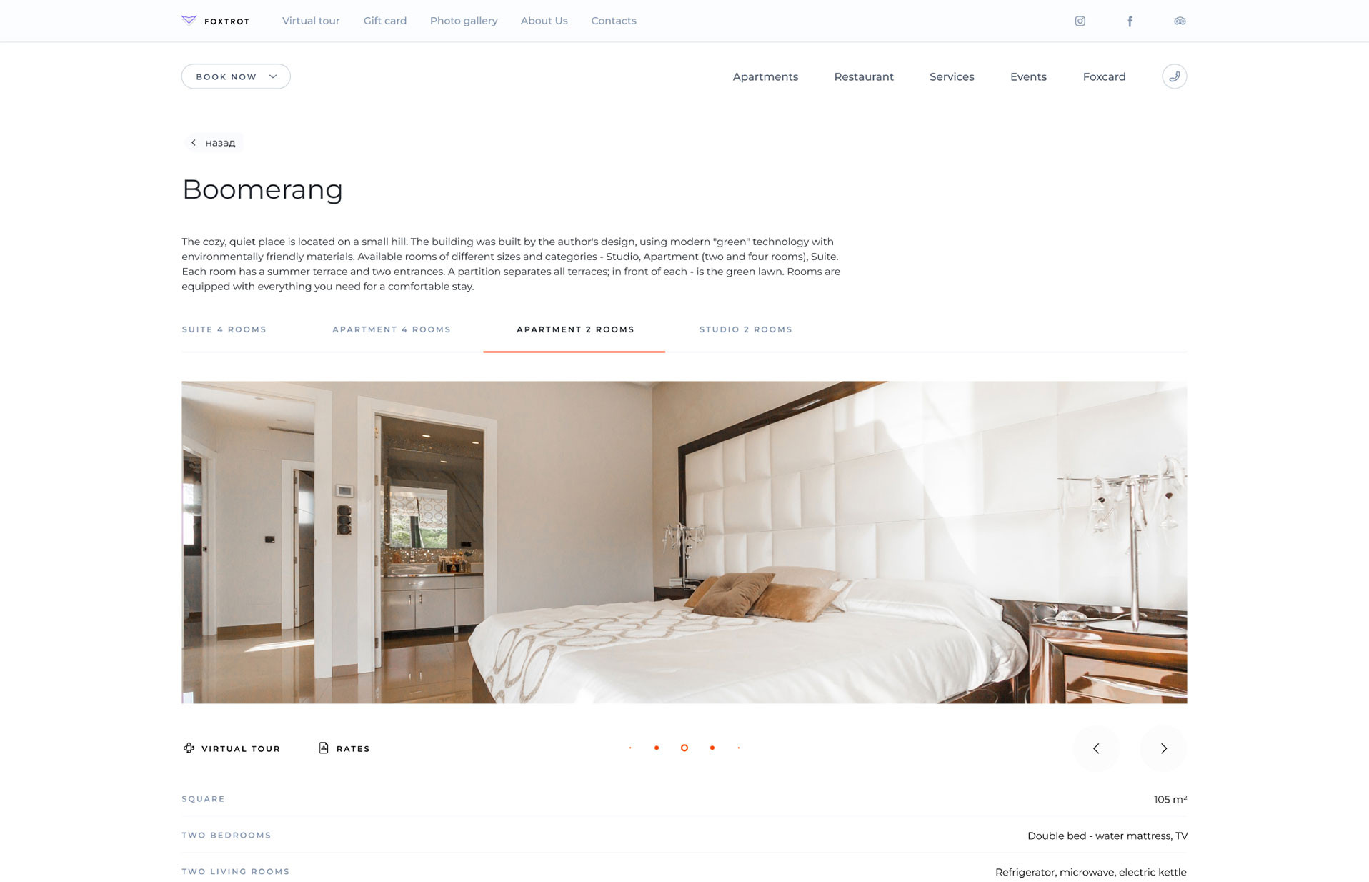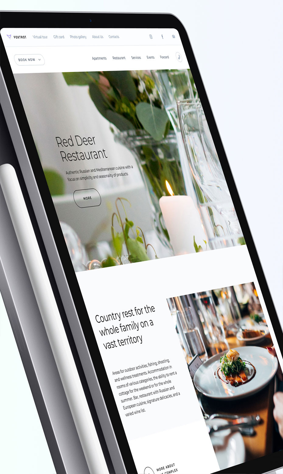To develop a convenient functional site with an attractive modern design for a recreation complex. The user should be able to book and pay for the services he needs and get acquainted with the upcoming events in Foxtrot.