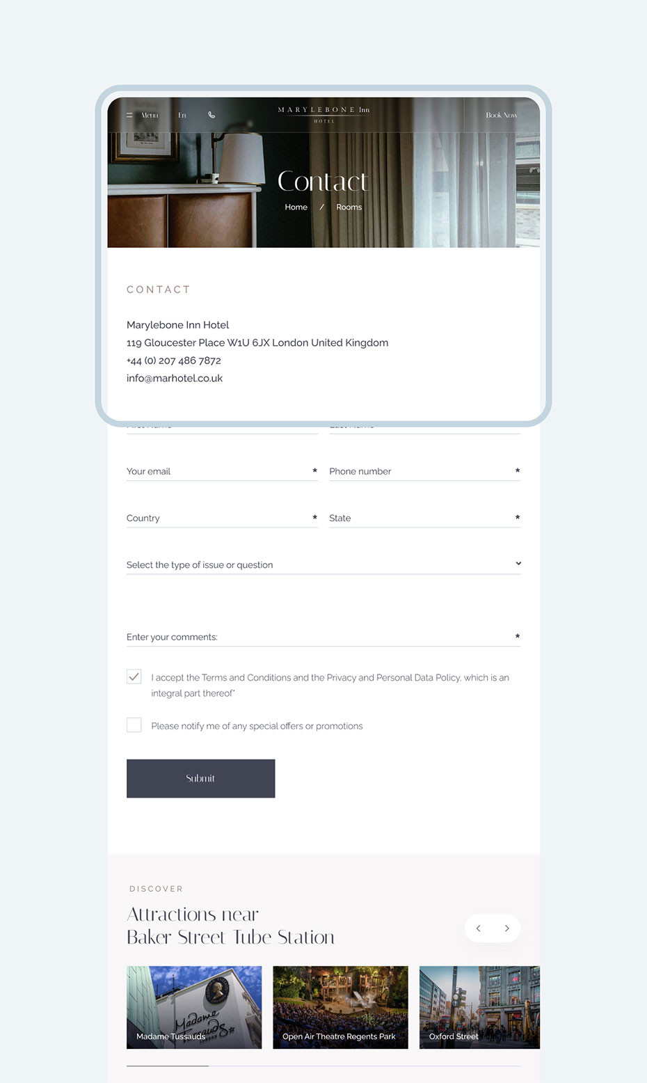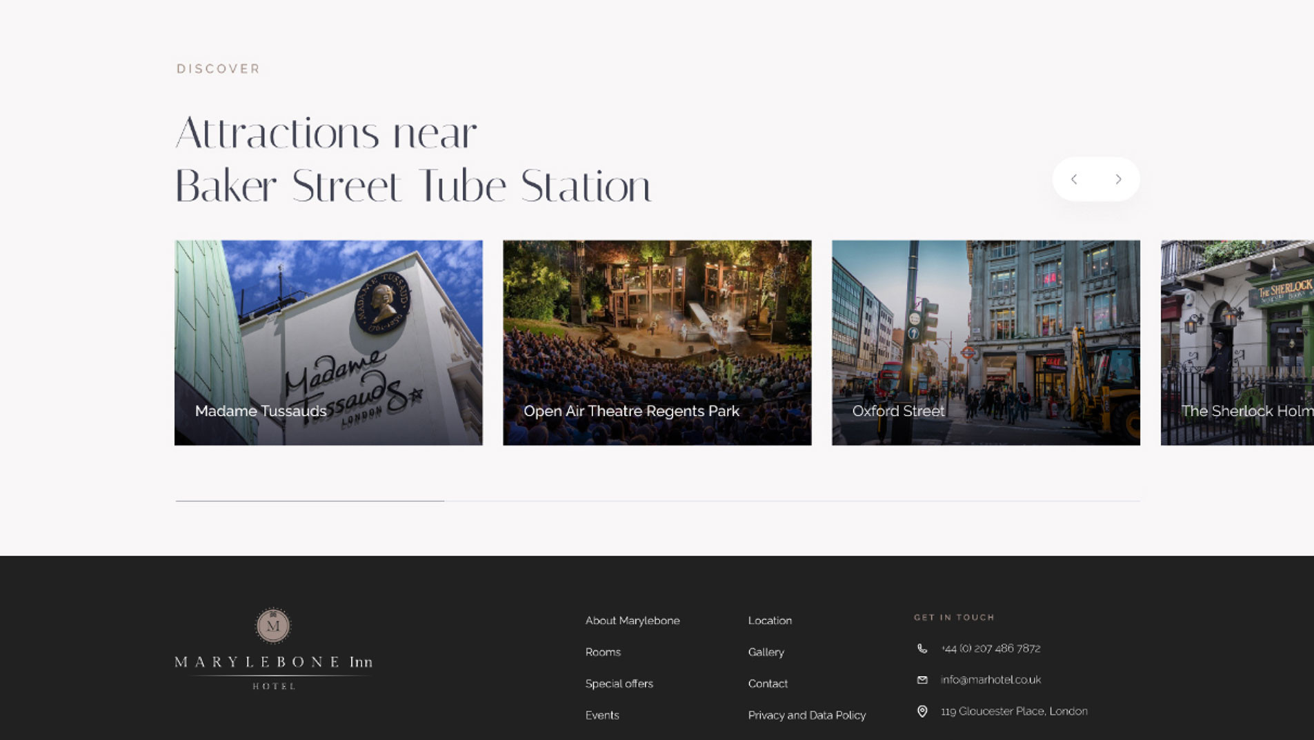 To develop a beautiful and user-friendly website with a unique modern design, which would emphasize the uniqueness and beauty of London and introduce the visitor to the attractions of the historic part of the city, located relatively close to the hotel.