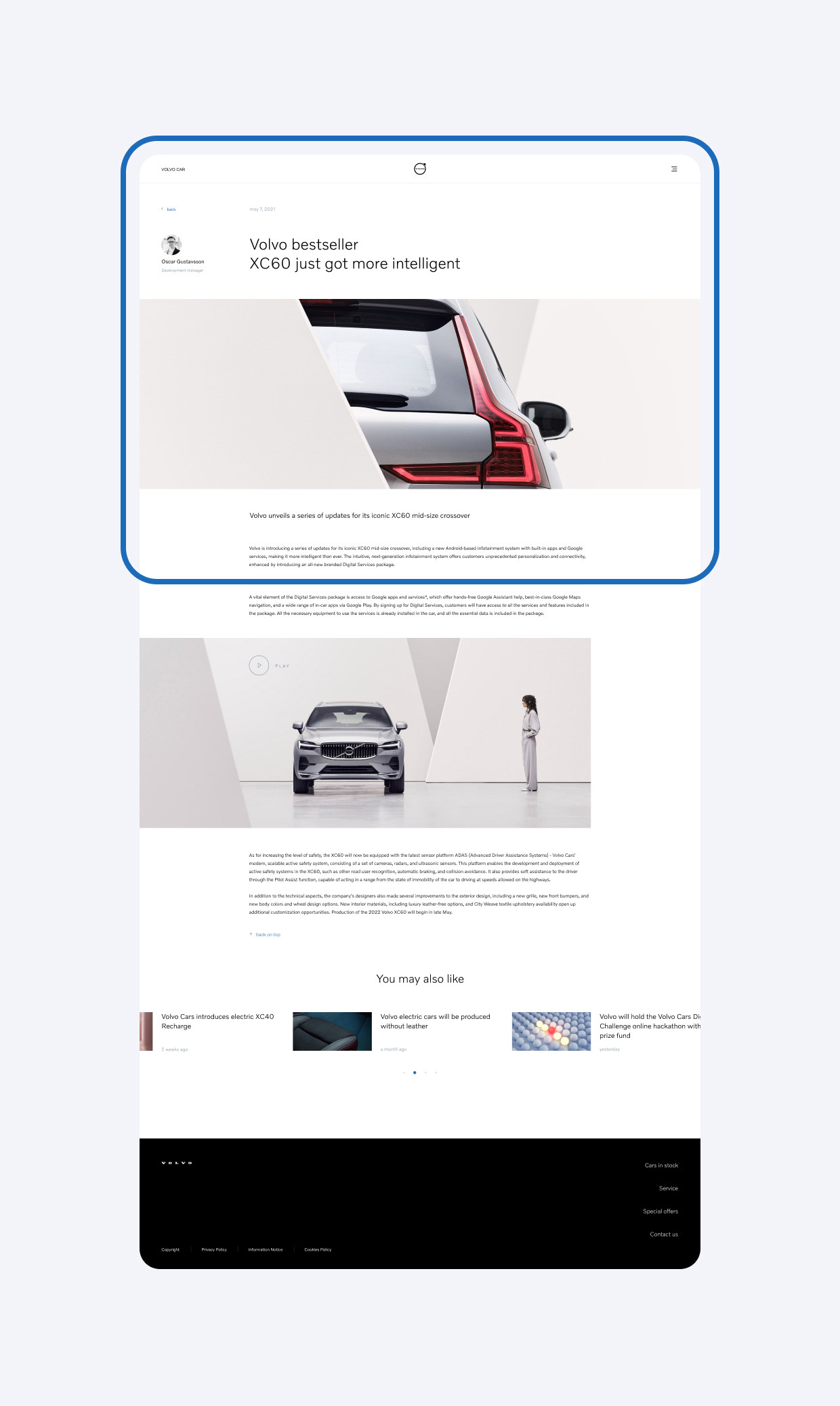 Car dealer wants to introduce the user to a range of Volvo cars, allow the user to choose the model and equipment they prefer, introduces the user to the interior and exterior details of the car models, demonstrates the beauty of style in Volvo cars, and provides a unique financial offer to the client.